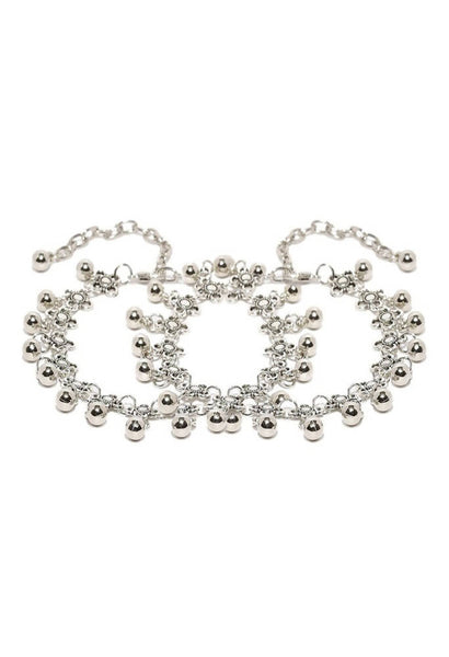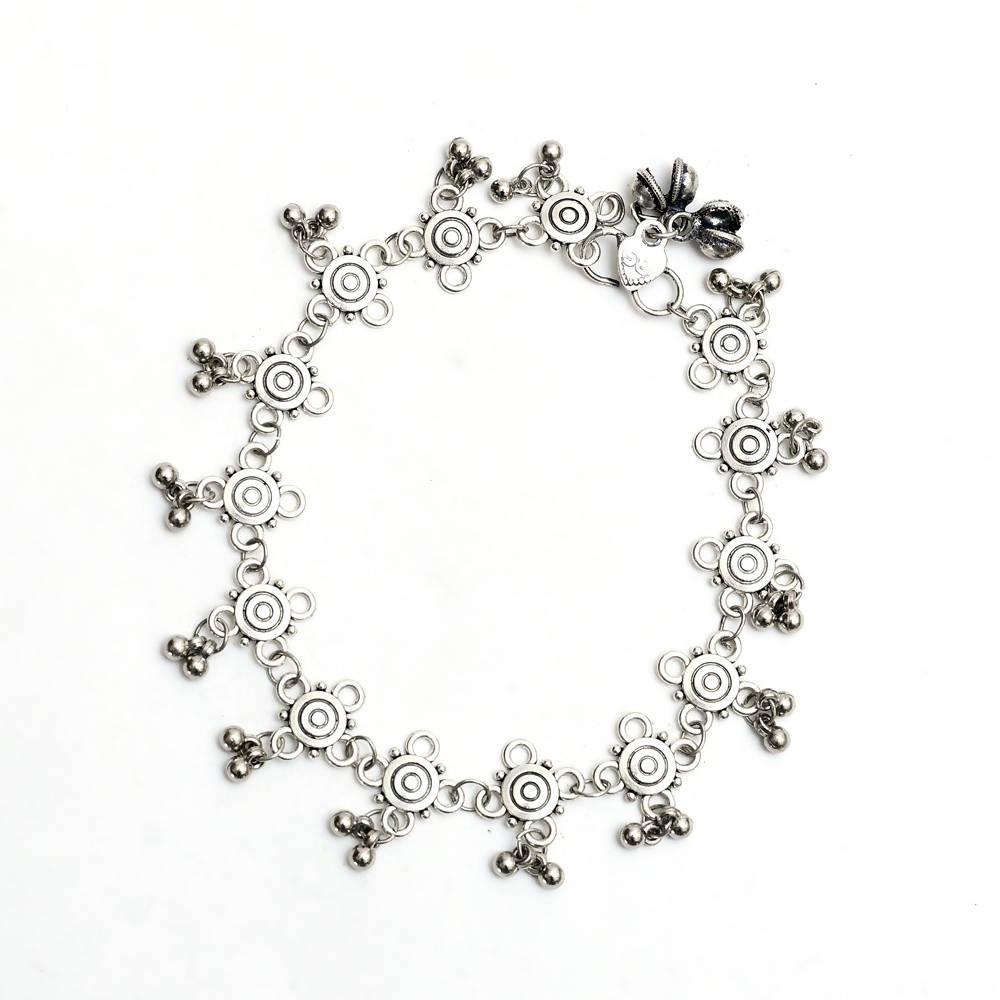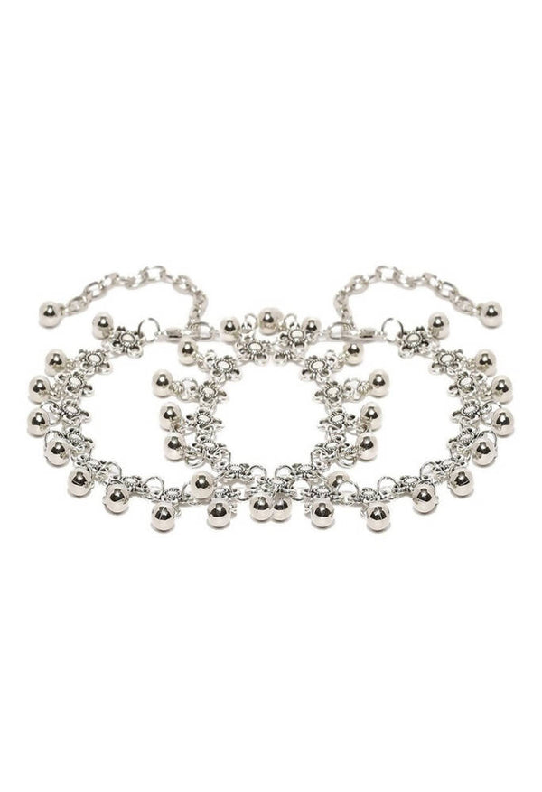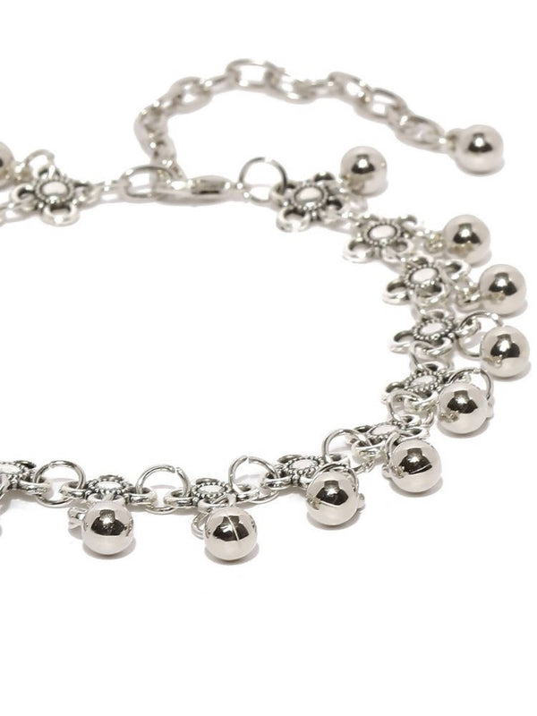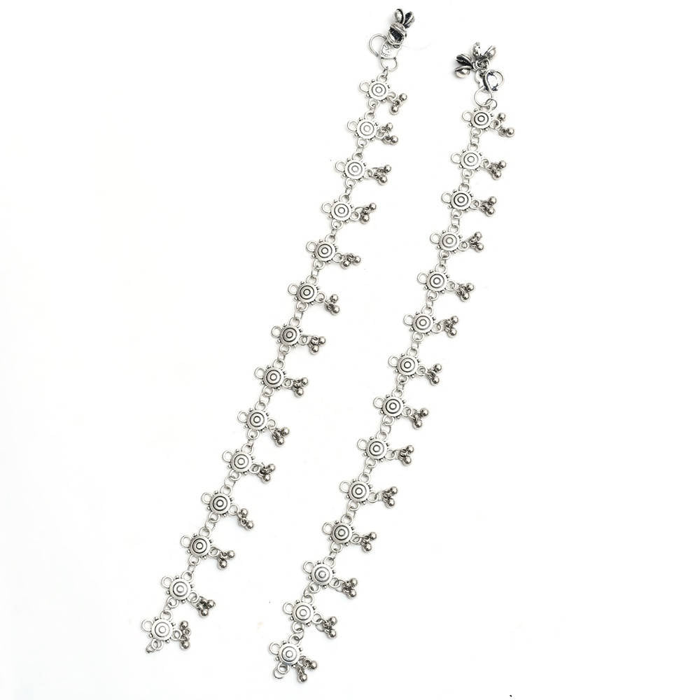 Mominos Fashion Kamal Johar Oxidised Silver Adjustable Anklets