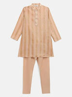 Ahalyaa Beige Chanderi Gold Foil Print Kids Kurta Churidar Set For Boys