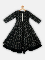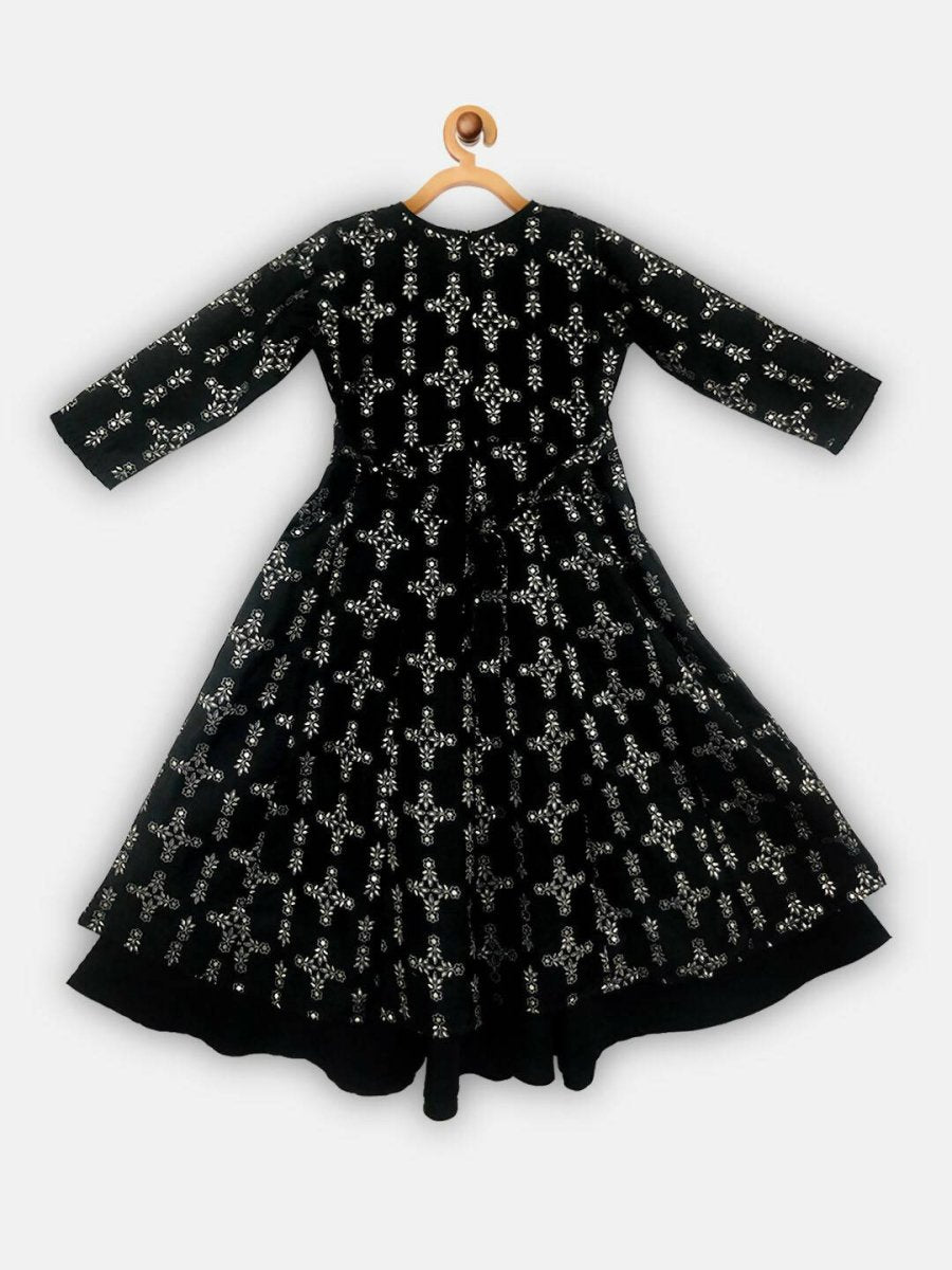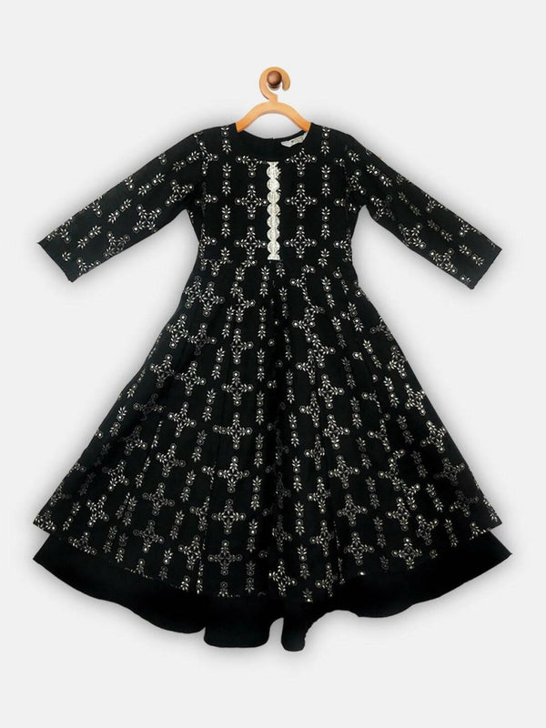 Ahalyaa Black Chanderi Gold Foil Printed Kids Dress For Girls