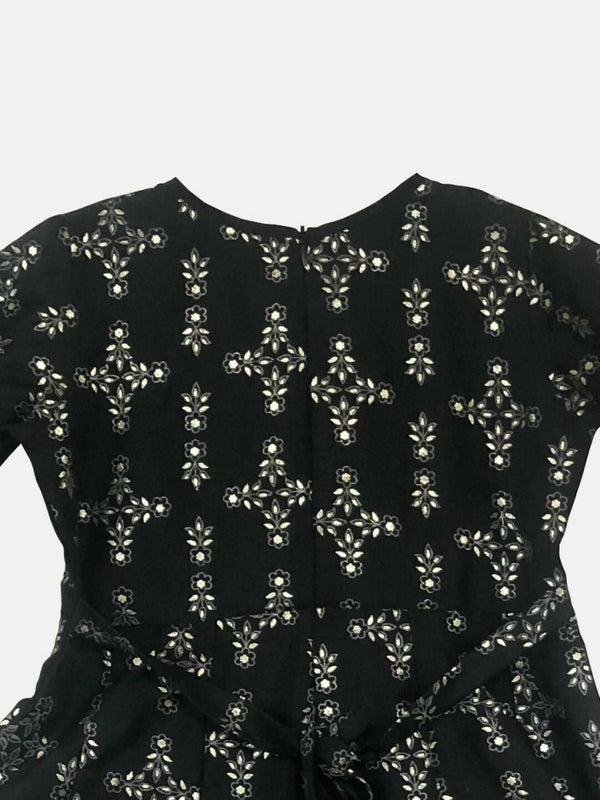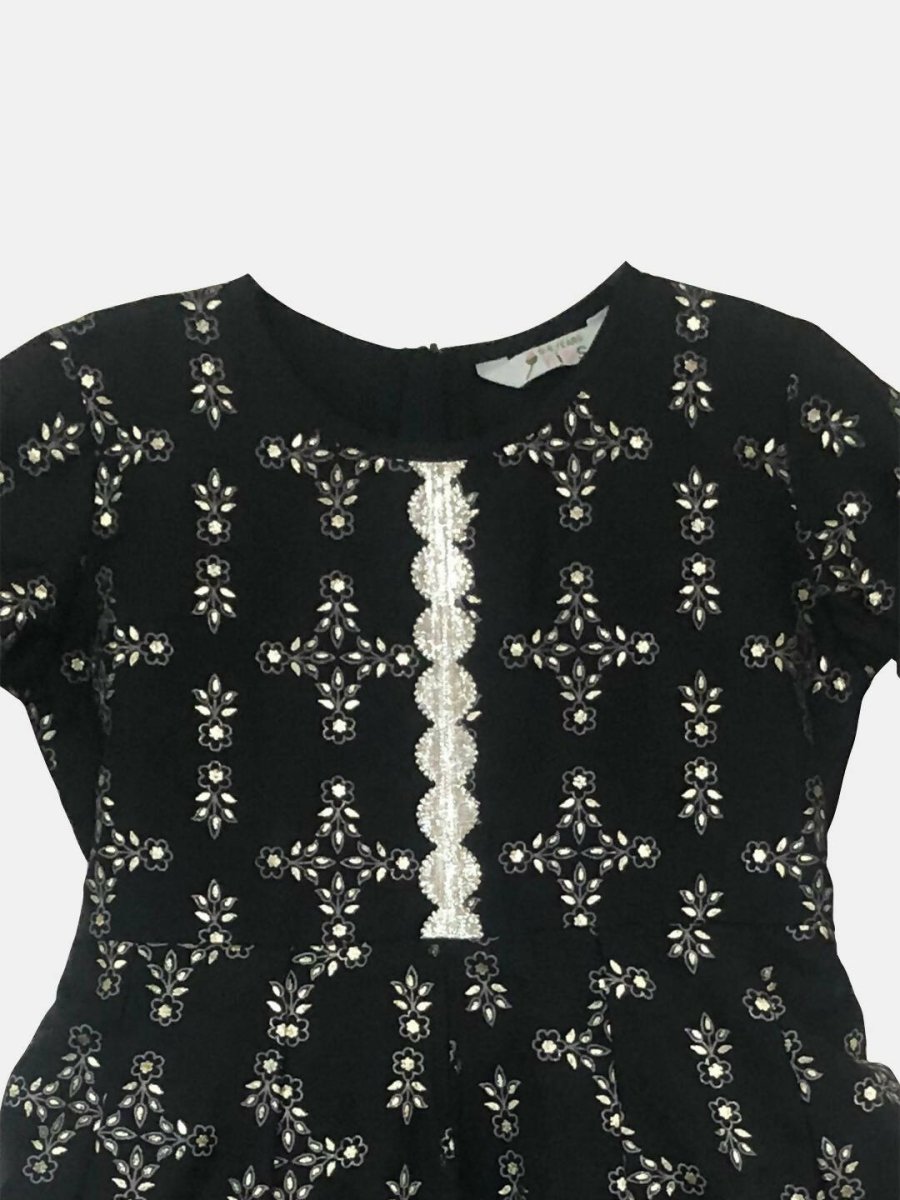 Ahalyaa Black Chanderi Gold Foil Printed Kids Dress For Girls - 2-3Y