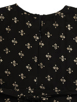 Ahalyaa Black Georgette Gold Foil Print Kids Peplum style Kurta Sharara Set With Dupatta For Girls - 2-3Y
