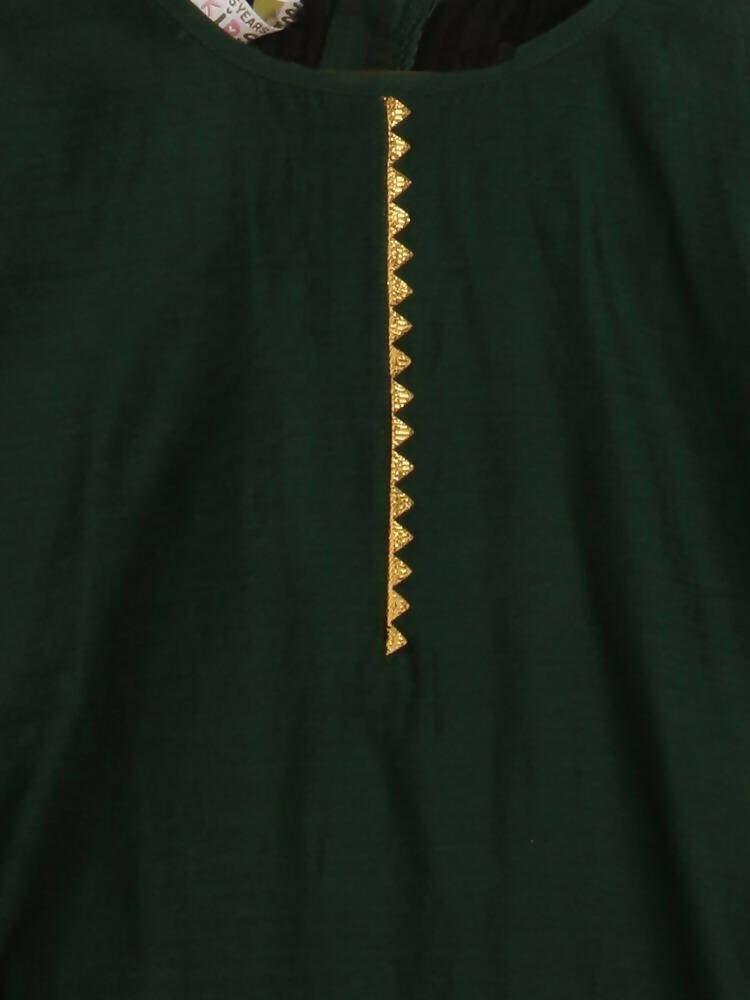 Ahalyaa Dark Green Chanderi Solid Kids Kurta Palazzo Set With Dupatta For GirlsThis clothing set consists of a kids girl Kurta Palazzo set with Dup...