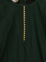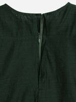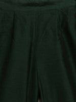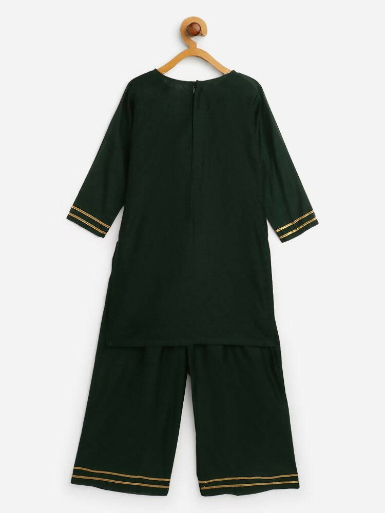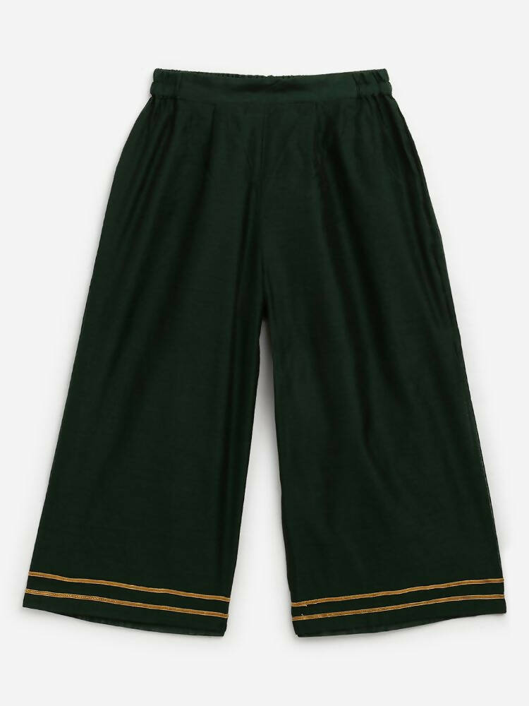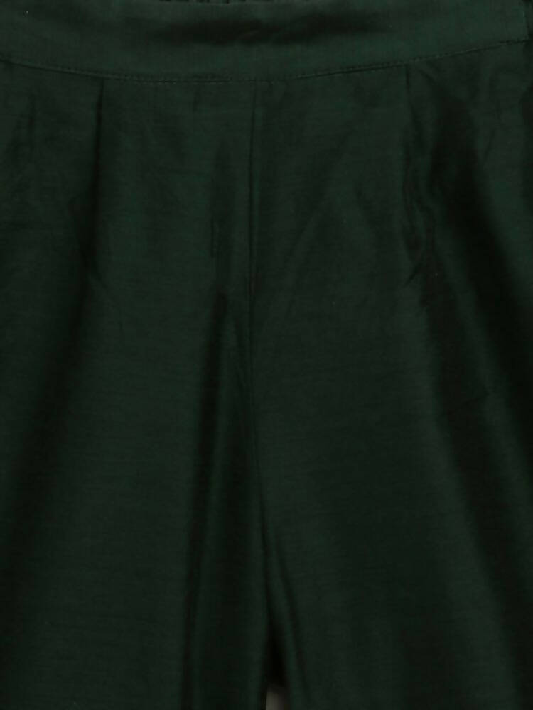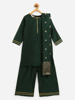Ahalyaa Dark Green Chanderi Solid Kids Kurta Palazzo Set With Dupatta For Girls