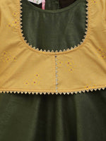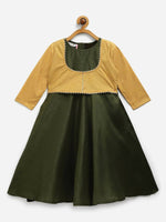 Ahalyaa Green Poly Silk Solid Kids Kurta With Printed Jacket For Girls