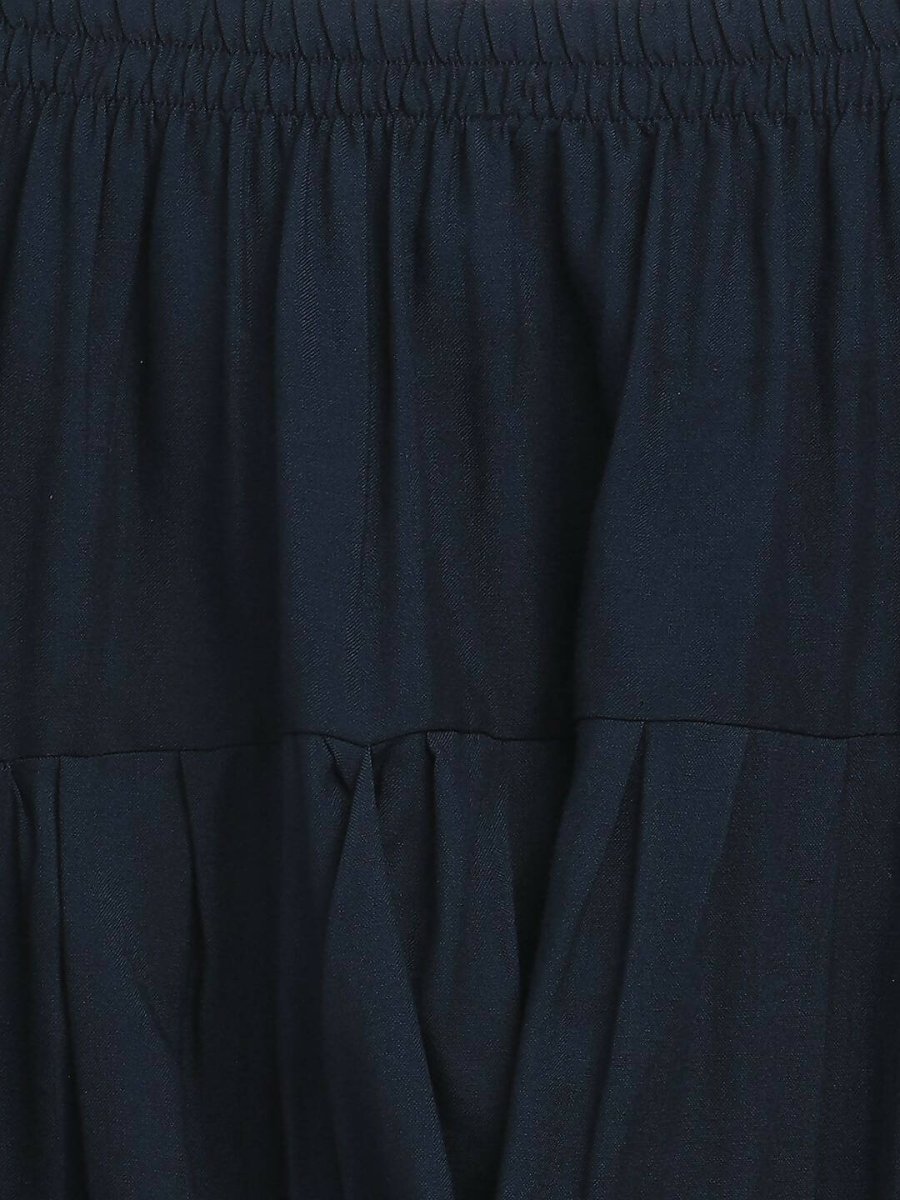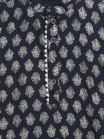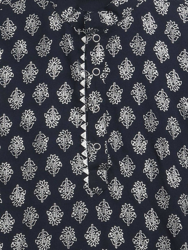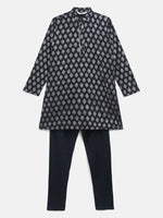 Ahalyaa Navy Blue Poly Rayon Silver Foil Print Kids Kurta Churidar Set For Boys