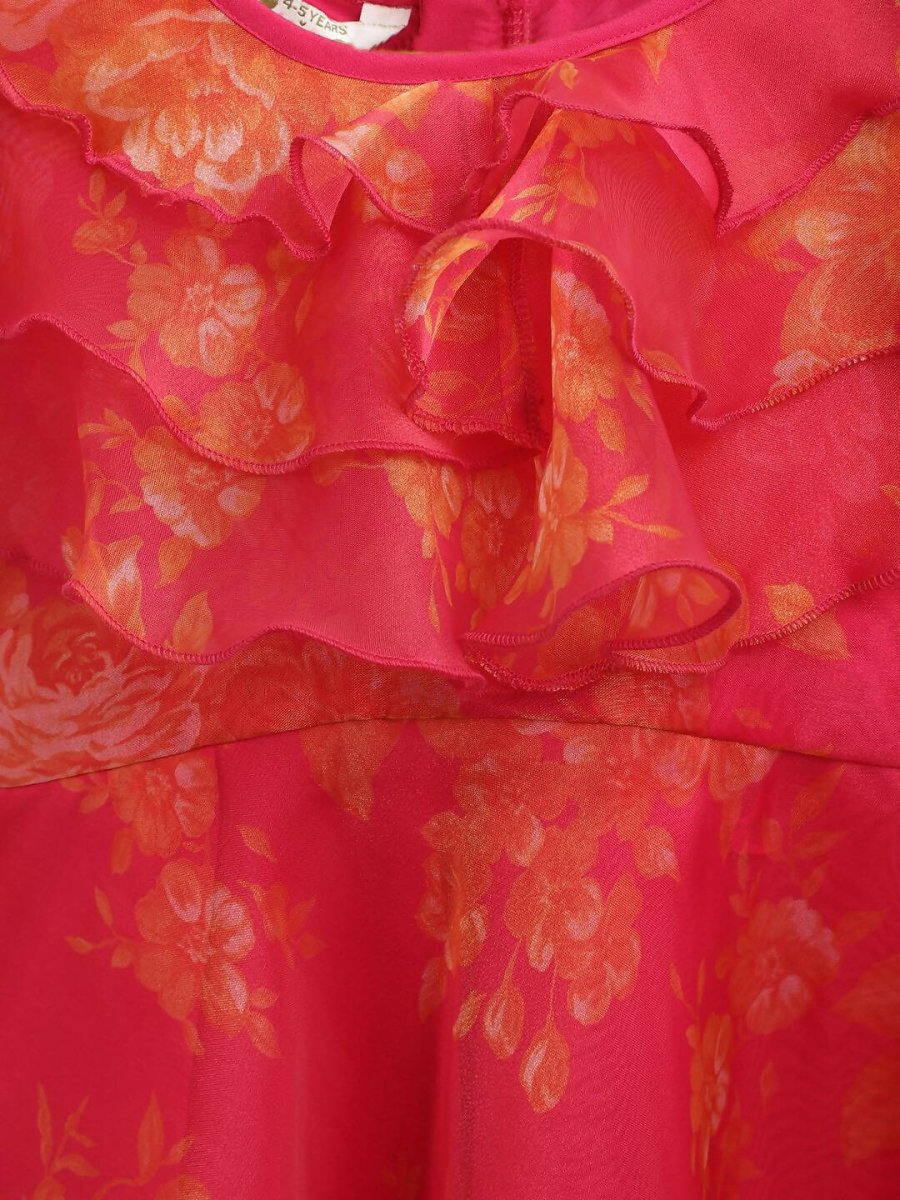 Ahalyaa Pink Organza Digital Print Kids Dress Kurta For Girls - 2-3Y