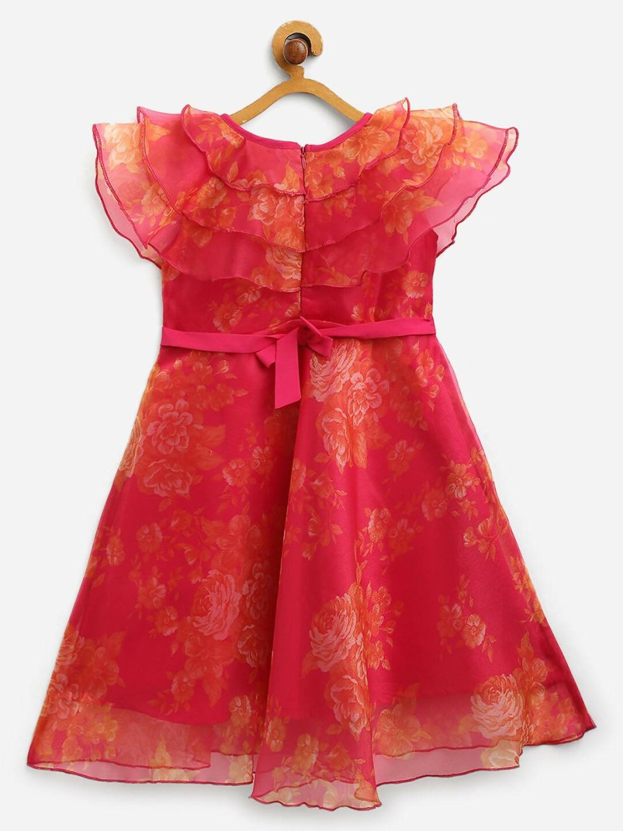 Ahalyaa Pink Organza Digital Print Kids Dress Kurta For Girls