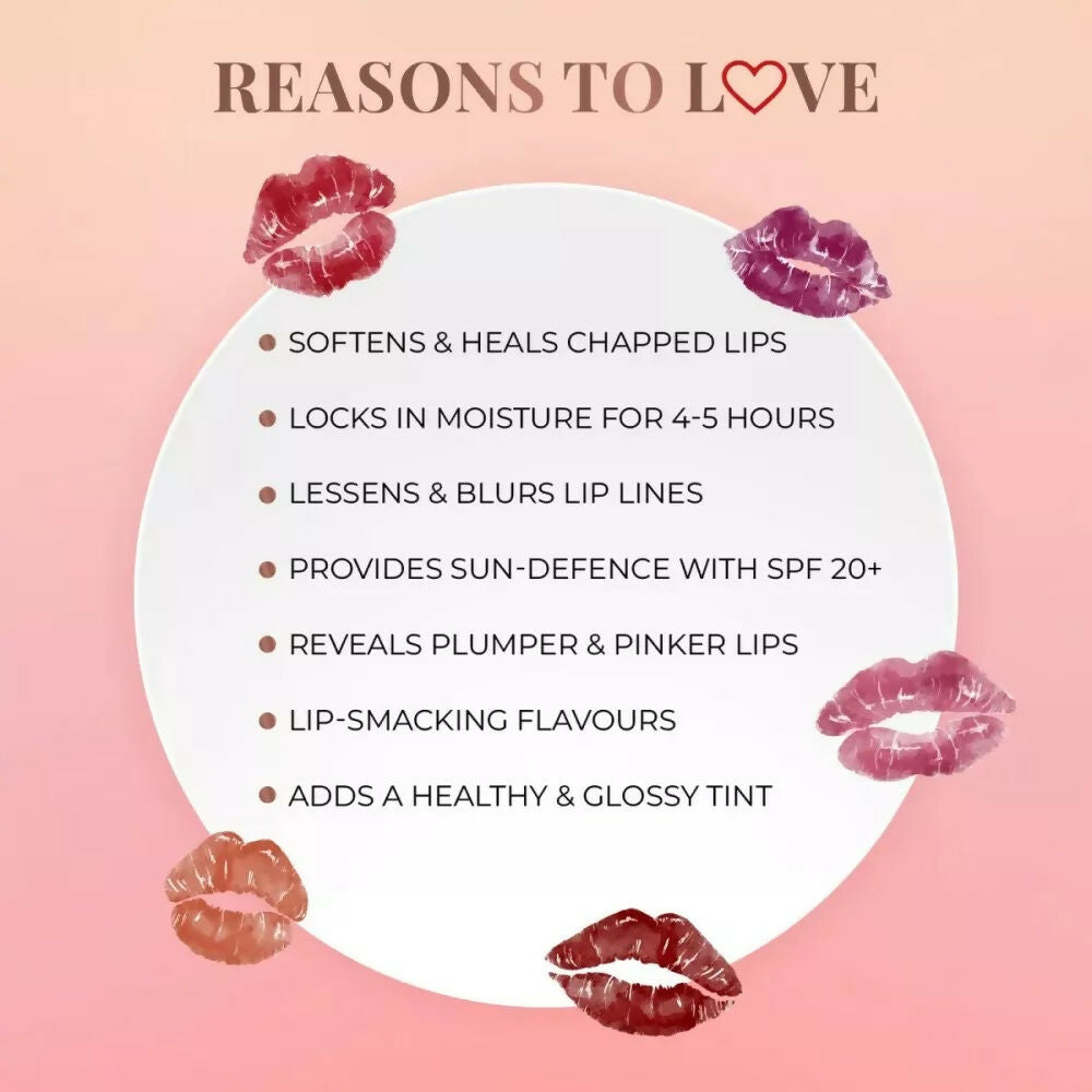 • Tired of covering your pigmented lips with lipsticks, only to make the condition worse? Confidently flaunt a plump & pink pout with Just Herbs’ Tinted Lip Balms! Formulated with a nutritious blend of Almond Oil & Shea Butter, which helps reduce pigmentation, repair chapped lips & seal in moisture. Shield your lips from sun damage with SPF 20+, keeping them wrinkle-free & soft. Pucker up with 5 ‘lip-smacking’ flavors that add a beautiful, dewy tint! Resist yourself from wanting to bite into them…can’t say we didn’t warn you!