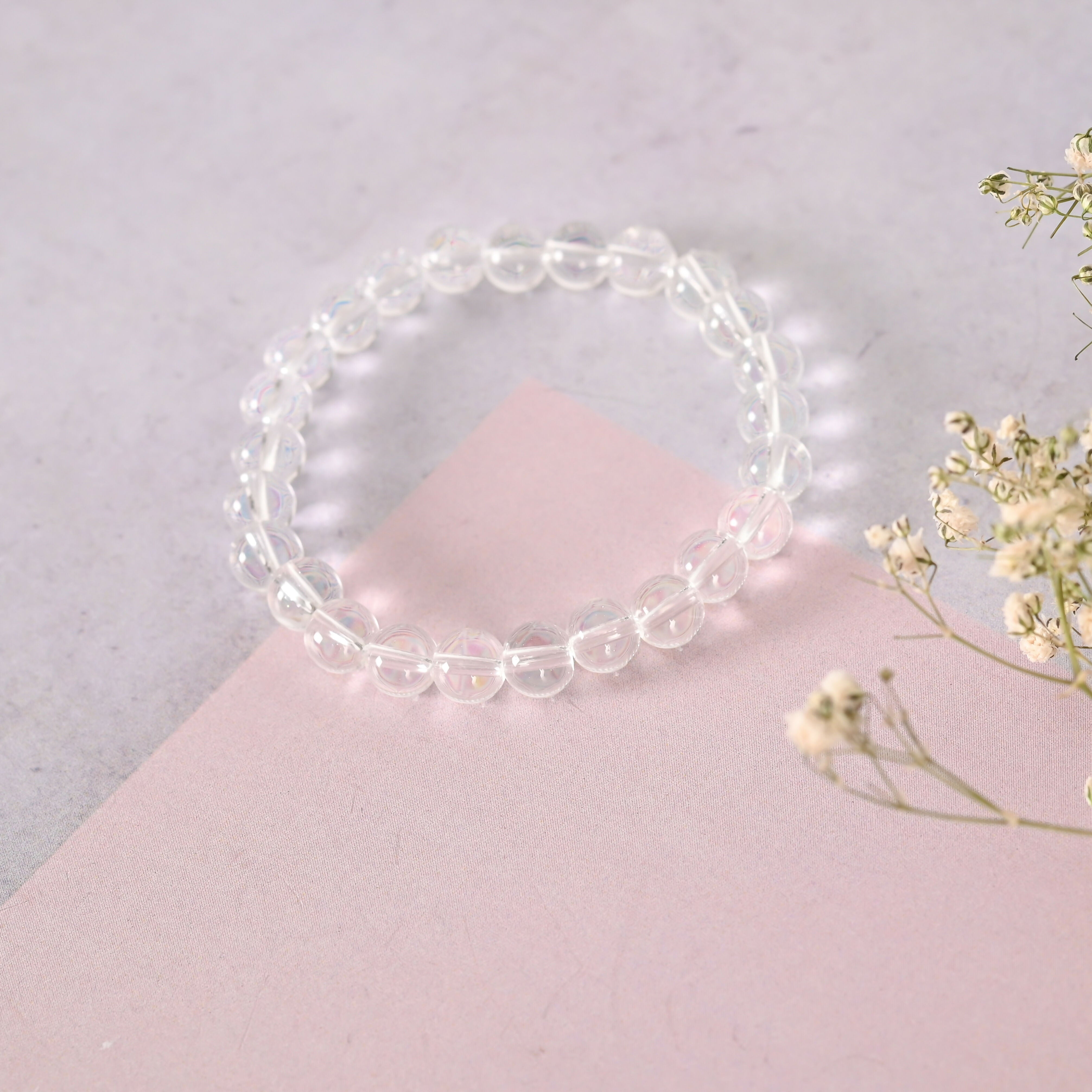 NVR Men & Women Transparent Beaded Elasticated Bracelet - Distacart