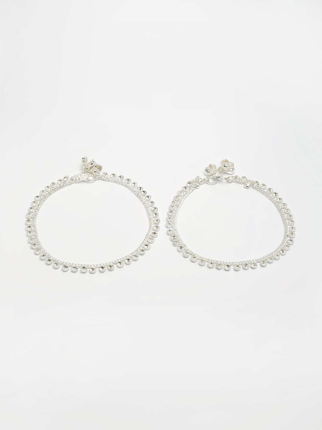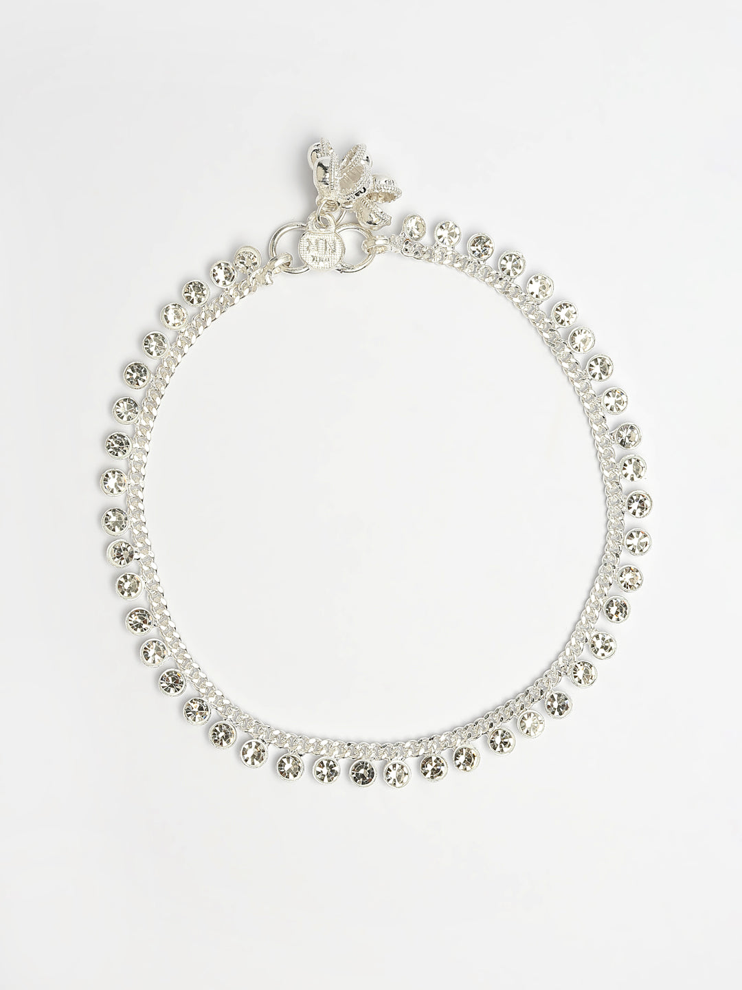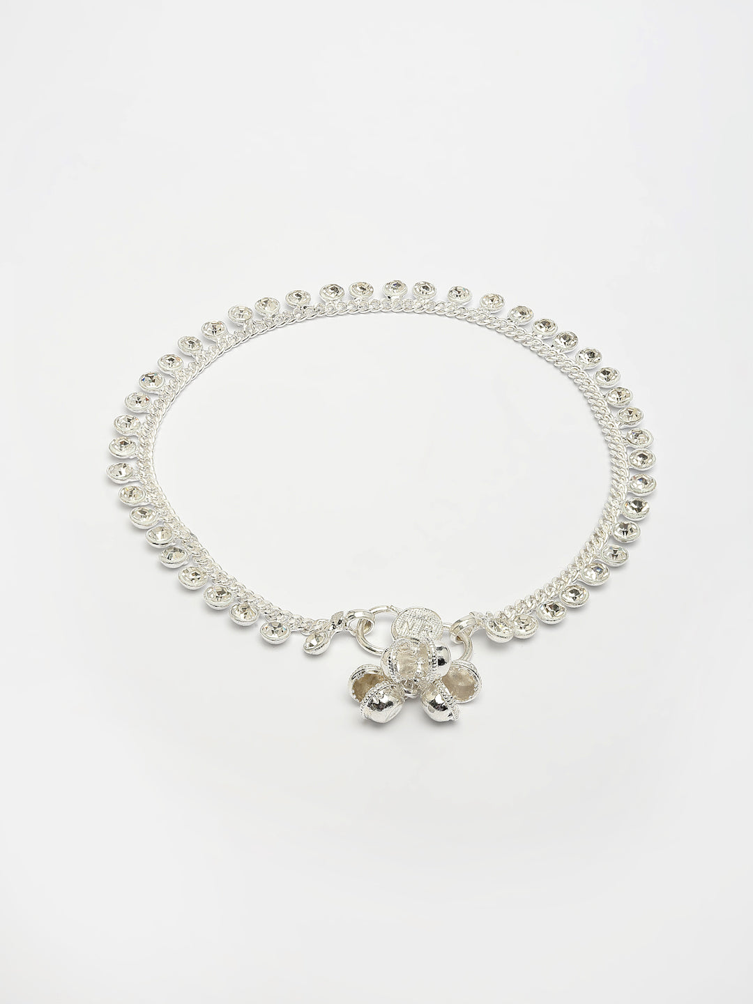 NVR Women's Set of 2 Silver-Plated Artificial Stone Studded Anklets - Distacart