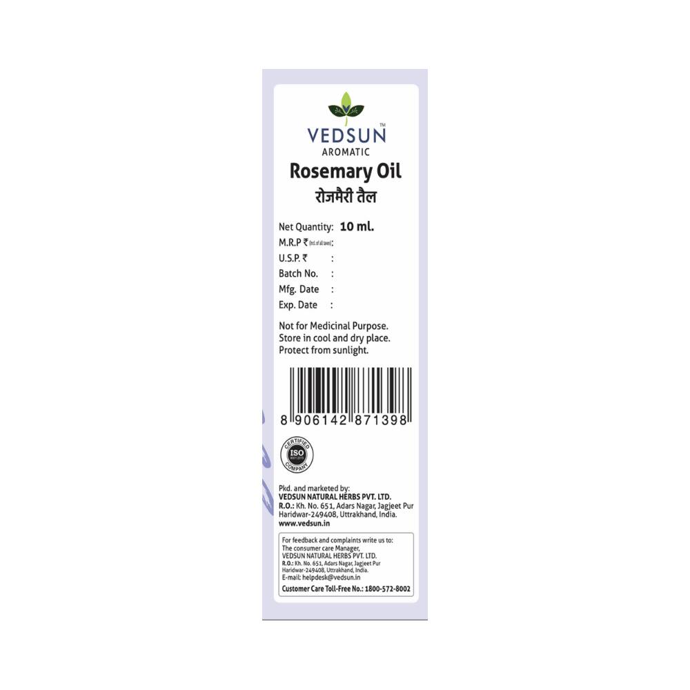 Vedsun Naturals Rosemerry Essential Oil Pure & Organic for Skin and Fragrance - Distacart