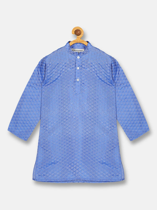 Sethukrishna Boys Blue Kurta with Pyjamas Product Details Blue self design Kurta with Pyjamas Kurta design: Geometric self design Straight ...