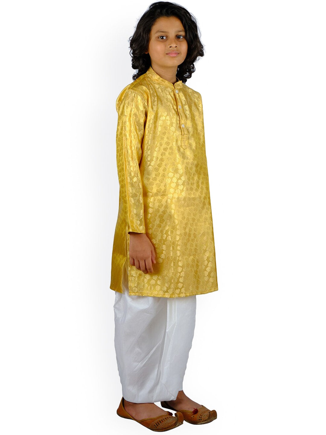 Sethukrishna Boys Gold-Toned Ethnic Motifs Printed Kurta with Pyjamas Product Details Gold-toned printed Kurta with Pyjamas Kurta design: E...