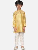 Sethukrishna Boys Gold-Toned & Off-White Kurta With Pyjamas