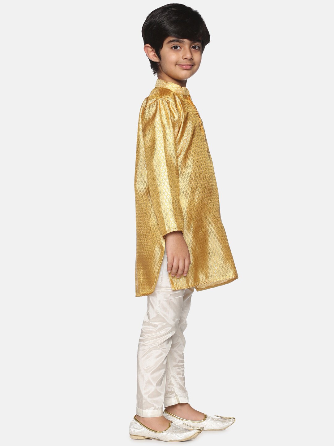 Sethukrishna Boys Gold-Toned & Off-White Kurta With Pyjamas - 2-3Y