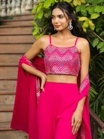 Janasya Pink Georgette Embroidered Top Bottom Cape
