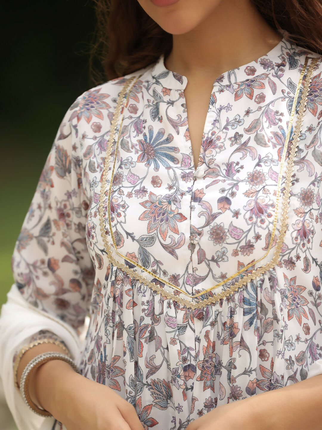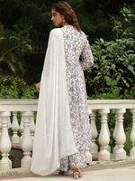 Janasya White Georgette Floral Kurta,Bottom & Dupatta