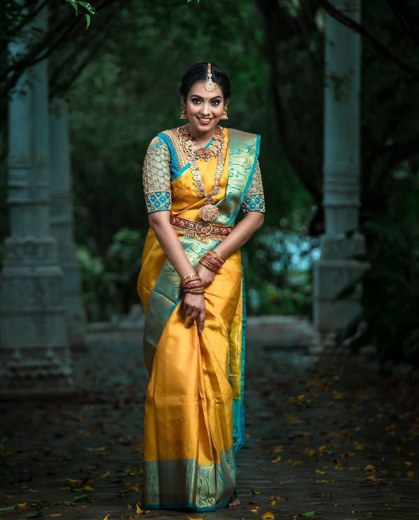 NOZ2TOZ Jacquard Lichi Silk Yellow Saree With Unstitched Blouse Piece - Distacart