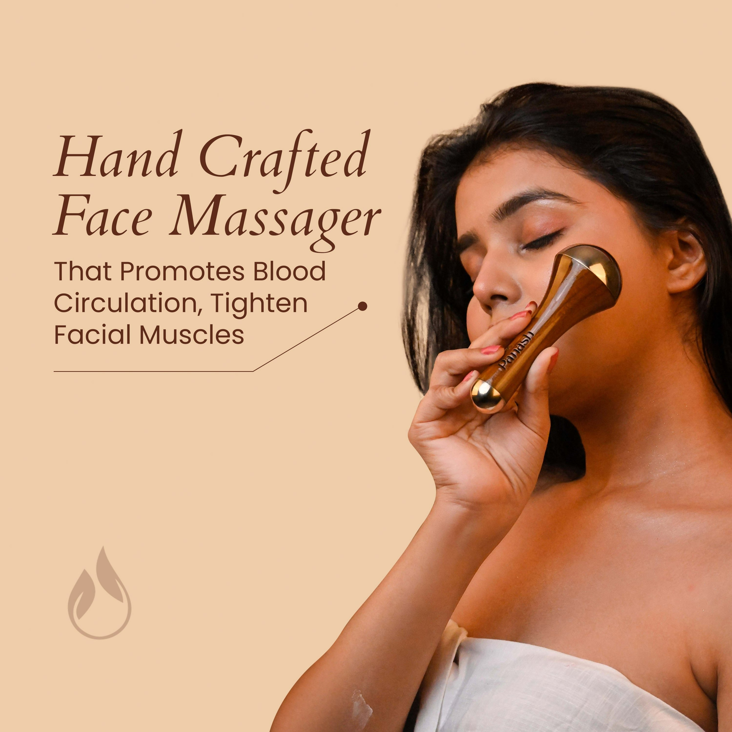 The Panash Kansya Face Massager is a traditional massage tool crafted using kansa—a metal blend of copper, zinc, and tin. Inspired by practices rooted in Indian tradition, this tool is designed for gentle massage of the face and neck.
