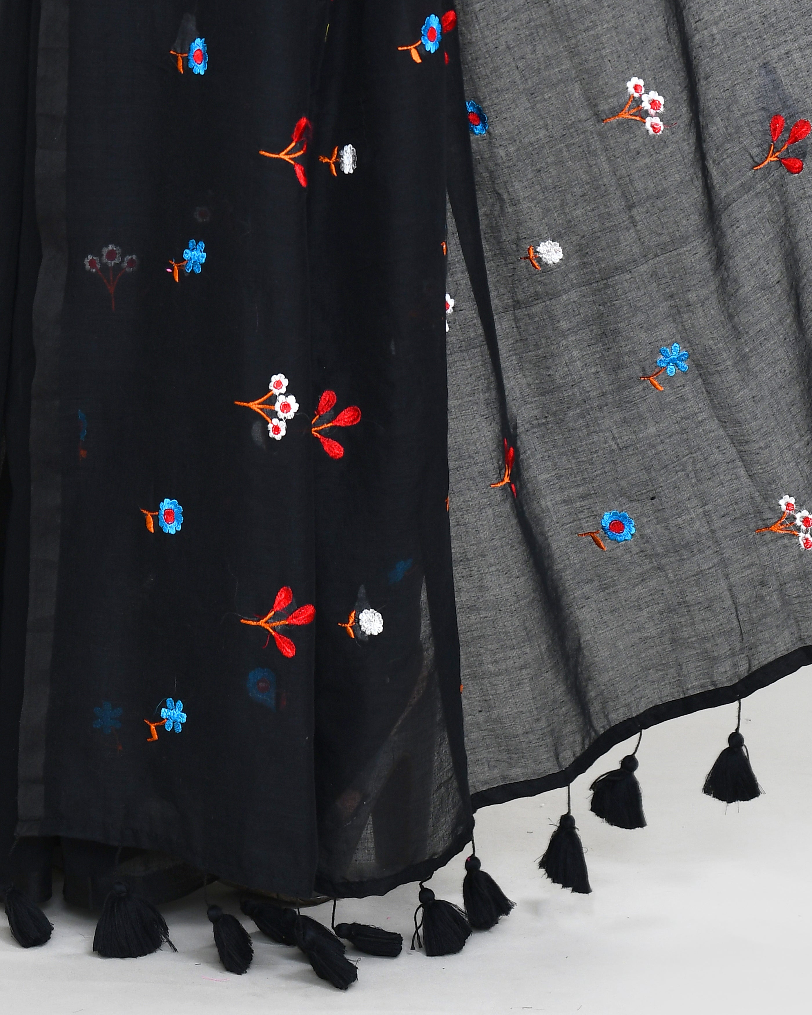 Piyari Fashion Women's Black Exclusive Embroidery Saree With TasselsAbout the Product:A fresh and vibrant addition to your wardrobes! This saree is...