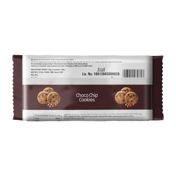 Unibic Choco Chip Cookies: Rich choco nut cookies Zero Percent fat Perfect tea time accompaniment Take a bite of these cookies and it is sure ...