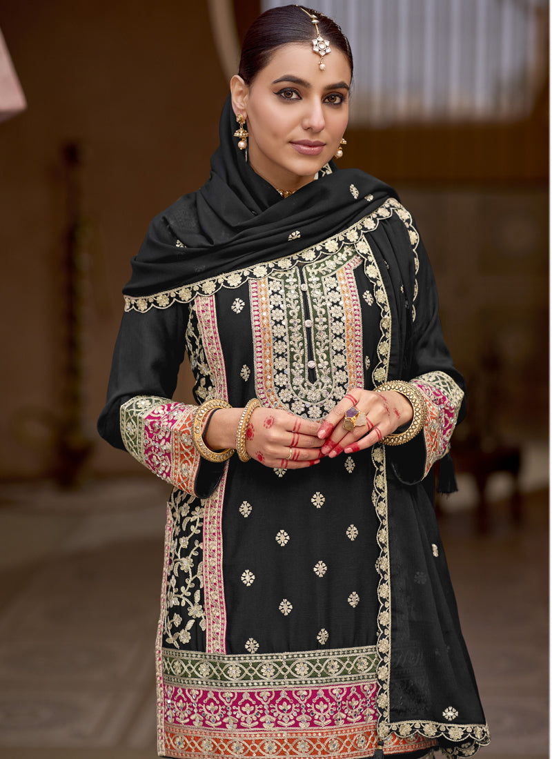 Vegaa Fashion Black Chinon Silk Embroidered Sharara Suit - 42