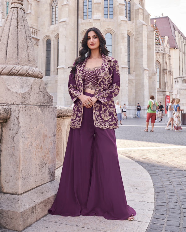 Evanik Designer Chinon Silk with Embroidery Dori Sequence Work Palazzo With Kurta Set