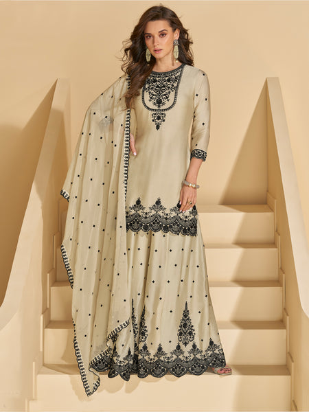 Evanik Off White Chiffon with Embroidery Sequence, Thread Work Palazzo Set