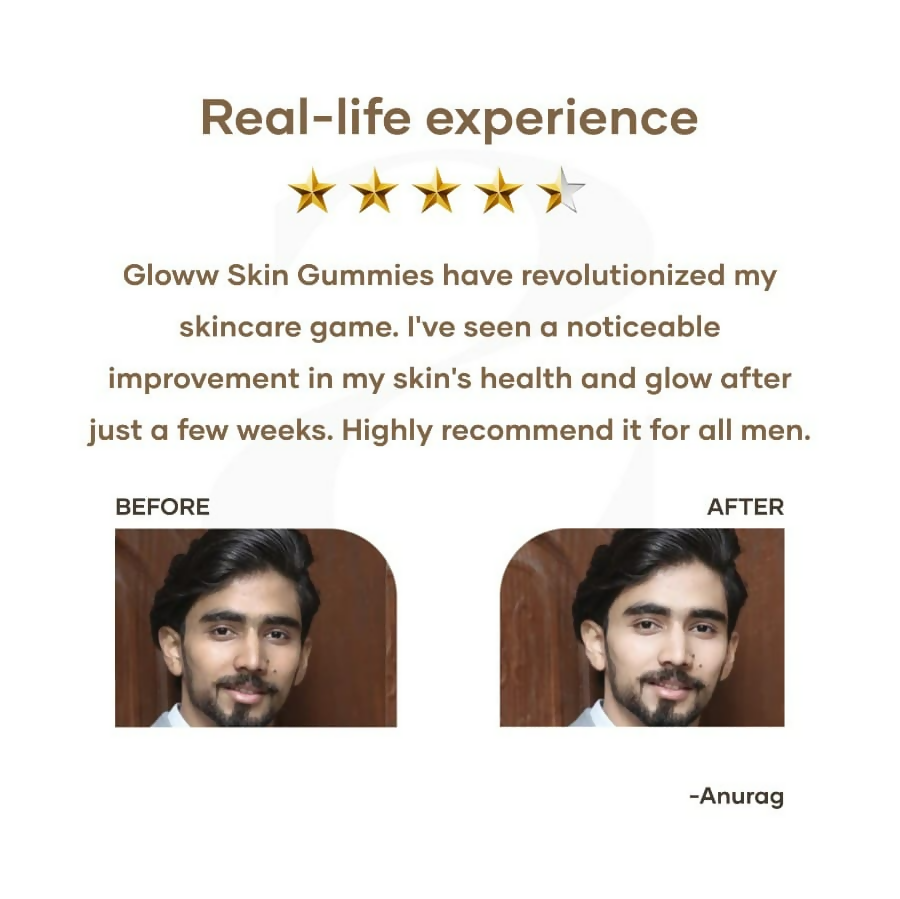 • Get your daily dose of skin vitamins with Gloww Skin Gummies for Men!