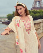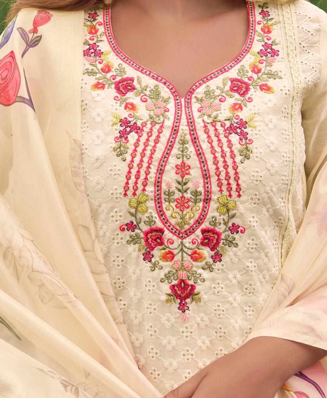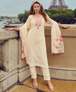 Prazu Fashion Off-White Chanderi Silk Chikankari Embroidered Kurta Set - M(38)