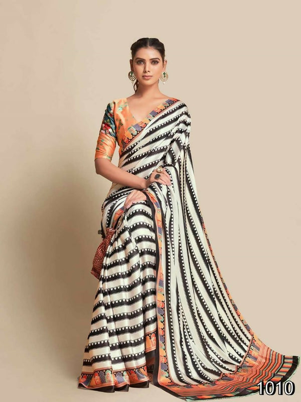 Partywear Designer Black & White Bright Moss Fancy Saree - Durga Saree Color: Black & White Blouse Color: Multi Saree Fabric: Bright...