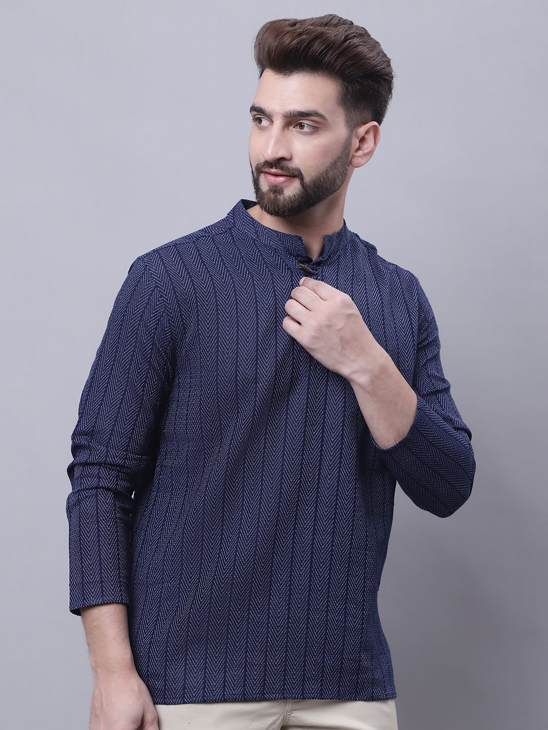 Indian Clothing Even Apparels Blue Pure Cotton Short Kurta With Band Collar About the product: Pure cotton short kurta with band collar. Additi...
