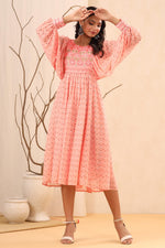 Juniper Women's Peach Ethnic Motif Printed Georgette Midi Dress With Sequins Work Top Type: Dress Top Pattern: Printed Print/Pattern Type/Trend:...