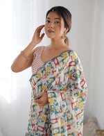 Monjolika Fashion Chinon Digital Print Classic Saree in Off White - Defaut Title
