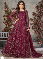 Vegaa Fashion Wine Net Embroidered Anarkali Suit