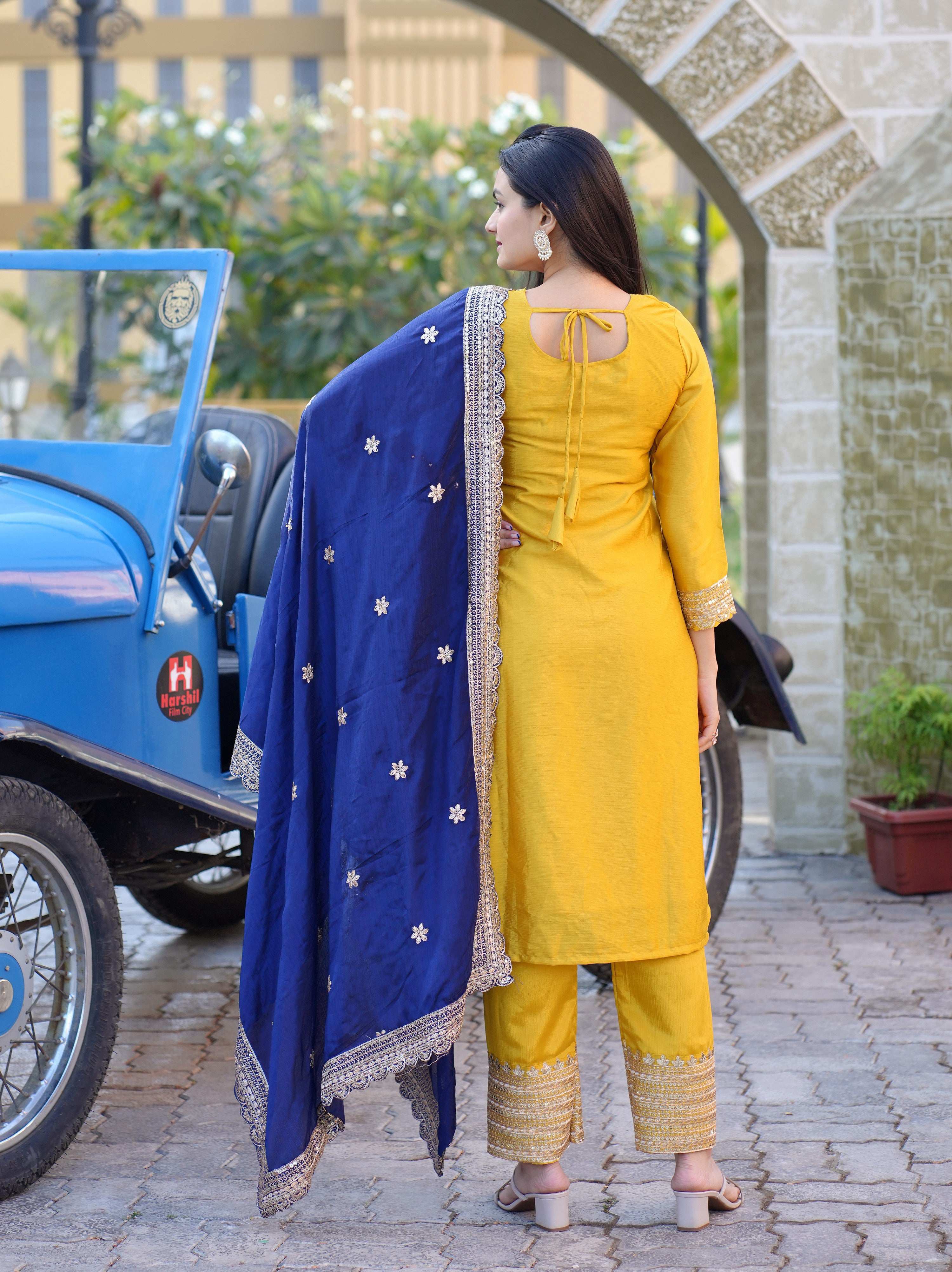 Yash Enterprise Yellow Heavy Sequence Embroidery Salwar Suit Set About the Product: Length of Top: 44 INCH Style(Anarkali, Flared, Straight): Str...