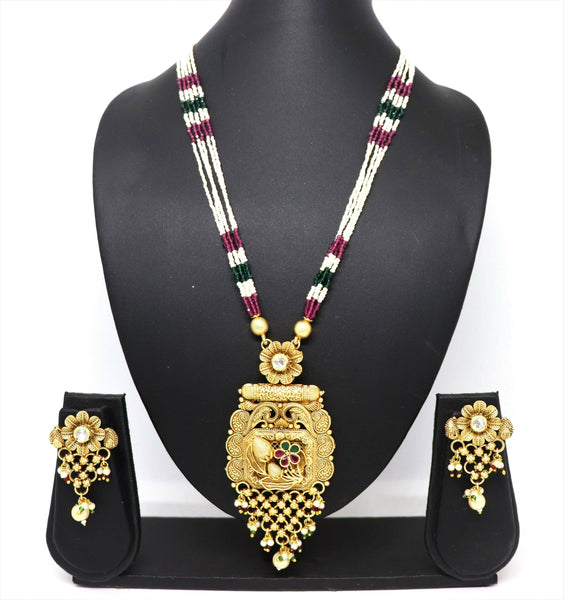 Joban Fashion White & Maroon & Green With Rajwadi Polish Necklace Set