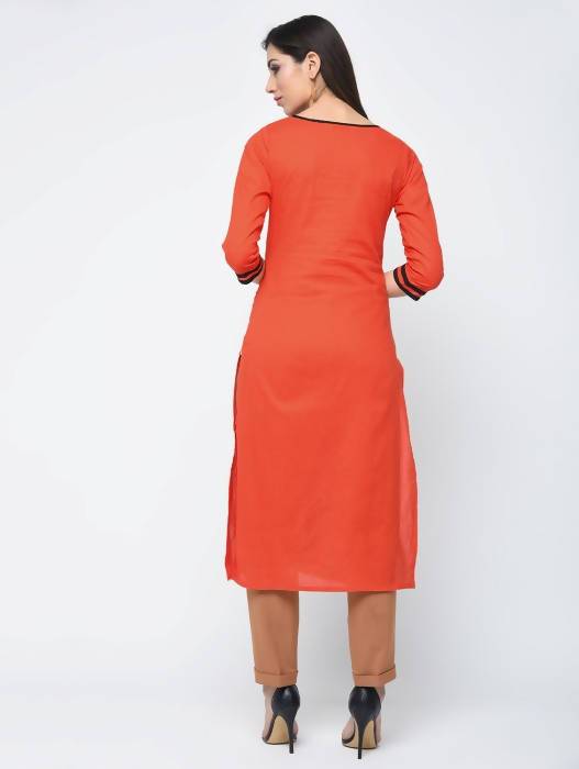 Aniyah Cotton Block Orange Straight Kurta:If we were you we would have chosen this brand, now you must be saying in your mind," yeah, sure you woul...