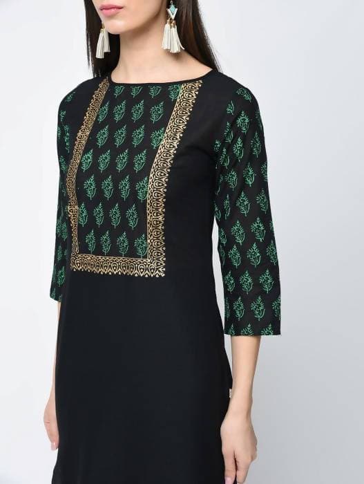 Aniyah Cotton Block Printed Black Straight Kurta (AN-131K)