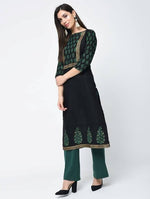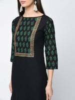 Aniyah Cotton Block Printed Black Straight Kurta: