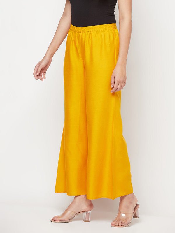 Aniyah Mustard Color Rayon Flared Slip-On Palazzo