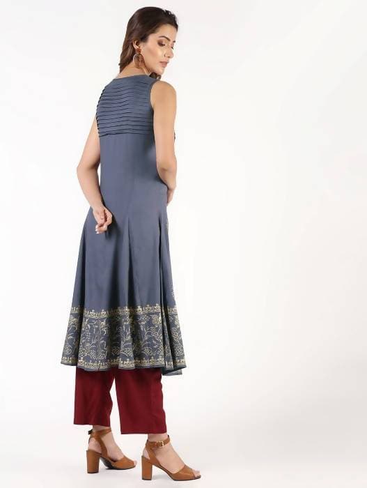 Aniyah Rayon Block Print Flared Grey Kurta :If we were you we would have chosen this brand, now you must be saying in your mind," yeah, sure you wo...