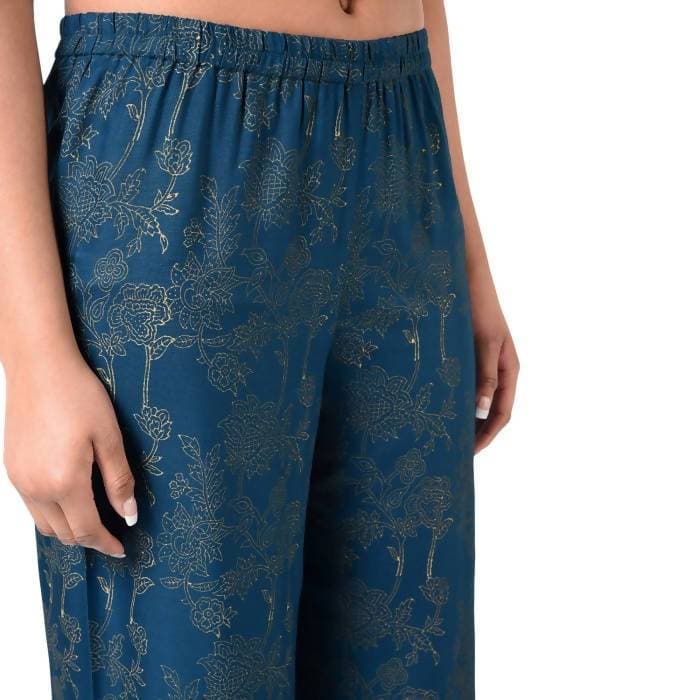 Aniyah Rayon Block Print Flared Palazzo Blue Color: