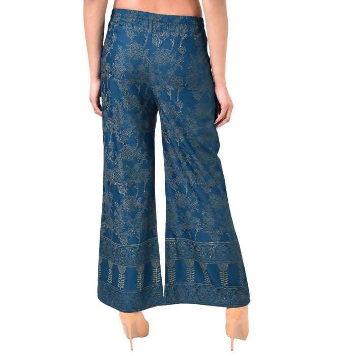 Aniyah Rayon Block Print Flared Palazzo Blue Color: If we were you we would have chosen this brand, now you must be saying in your mind," yeah, su...