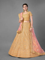 Yellow Heavy Embroidered Art Silk bridal Lehenga features an Art Silk with satin 2 layer with heavy quality can-can lehenga. embroidery is completed with Thread & Sequins. This Style is made in India and checked by hand to ensure high quality.