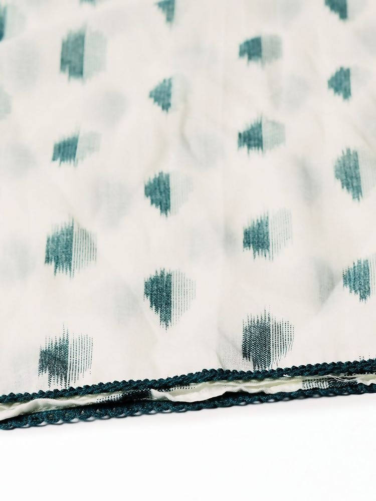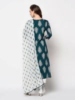 Teal Green Block Print Kurta with Palazzos with dupatta Kurta design: Block printed Straight shape Regular style Round neck, three-quarter regular sleeves detail Calf length with straight hem rayon machine weave fabric Palazzos design: Printed Palazzos Elasticated waistband Slip-on closure Material & Care Top fabric: Rayon Bottom fabric: Rayon Dupatta fabric: Voile Hand wash