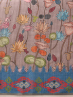 Hiral Fashion Grey Banarasi Silk Cotton Floral Digital Print Saree