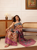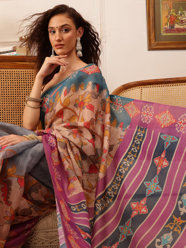 Hiral Fashion Purple Banarasi Silk Cotton Floral Digital Print Saree