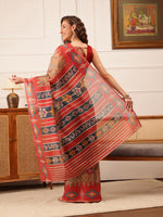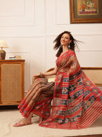 Hiral Fashion Red Banarasi Silk Cotton Floral Digital Print Saree