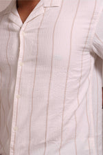Crafted from a soft, breathable fabric, this shirt offers all-day comfort while maintaining a polished, laid-back look. The subtle textured stripes add depth and interest to the classic white color, giving it a modern yet timeless appeal. The relaxed fit provides a generous, easygoing silhouette, perfect for those who prefer a more relaxed style without compromising on sharpness.